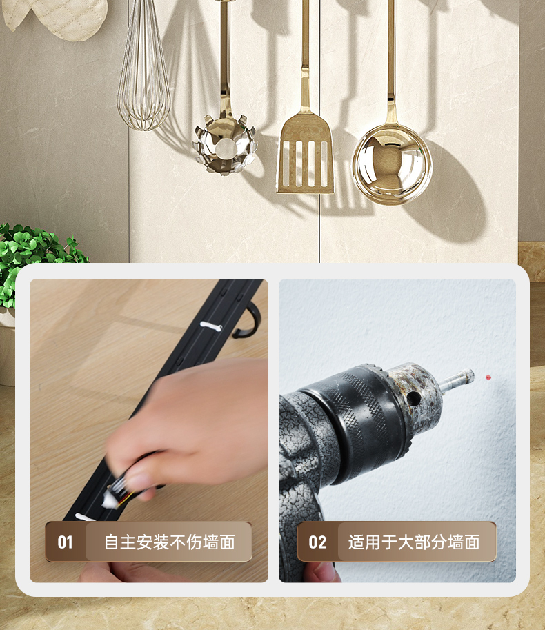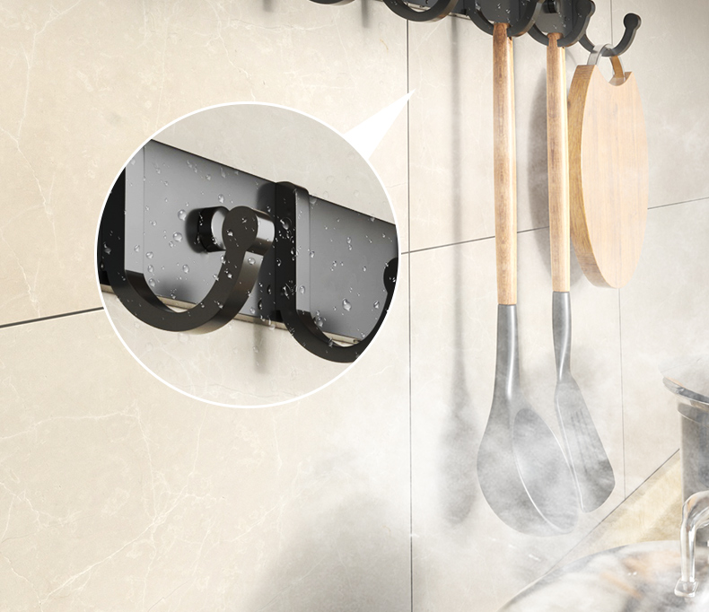 免打孔厨房挂钩架壁挂式抹布沥水架多功能锅铲勺子用品大全收纳架的描述