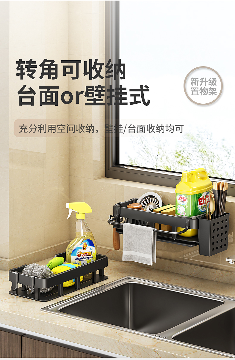 厨房置物架免打孔抹布海绵沥水收纳多功能壁挂调料架家用水槽神器的描述
