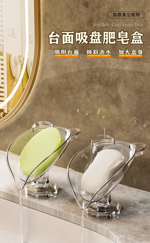 肥皂盒沥水免打孔家用轻奢吸盘香皂盒卫生间台面肥皂架浴室置物架的描述