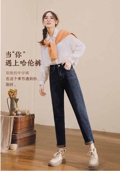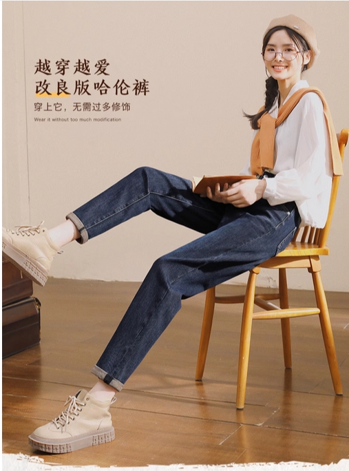 牛仔裤女春夏老爹裤子2025新款小个子高腰直筒九分宽松萝卜哈伦裤