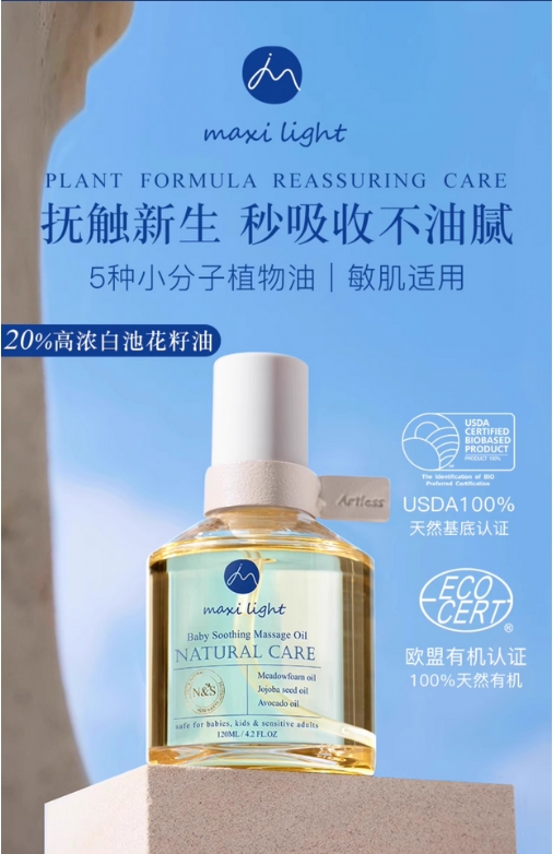 英国Maxilight奇麦思新生婴幼儿抚触油舒缓按摩宝宝身体护肤的描述